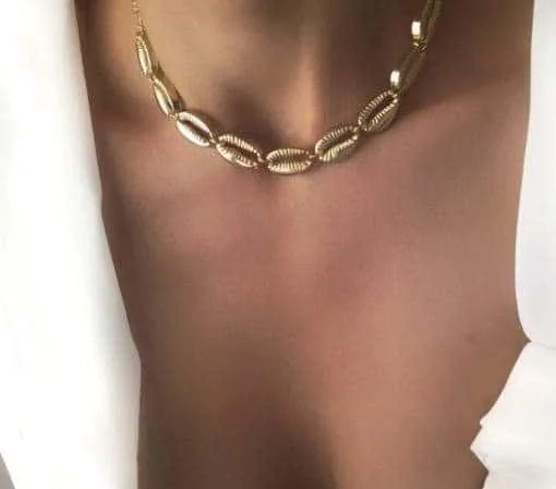 Collier ras du cou plaqué or. Collier coquillage tendance 2025. Longueur: :38cm.